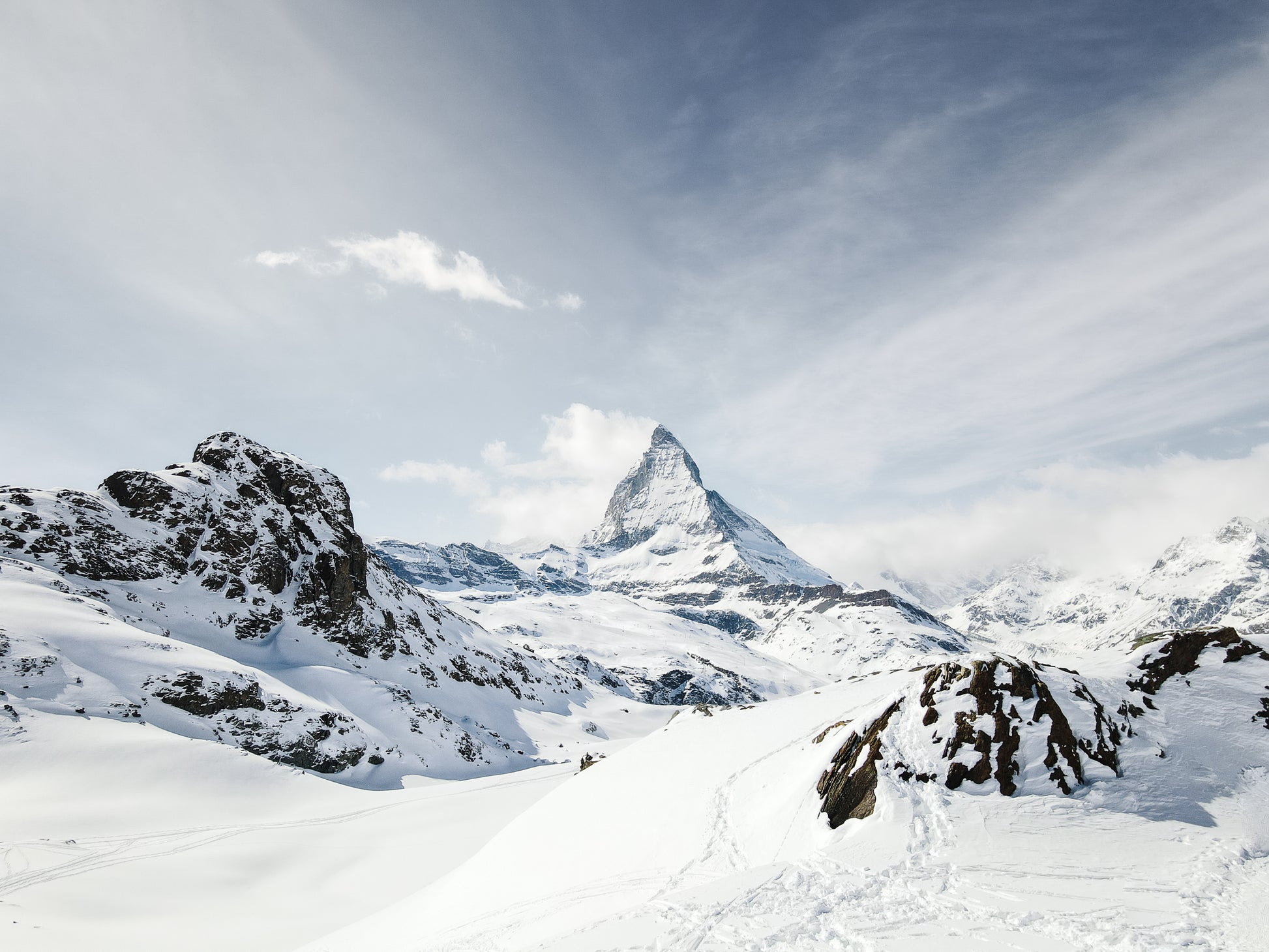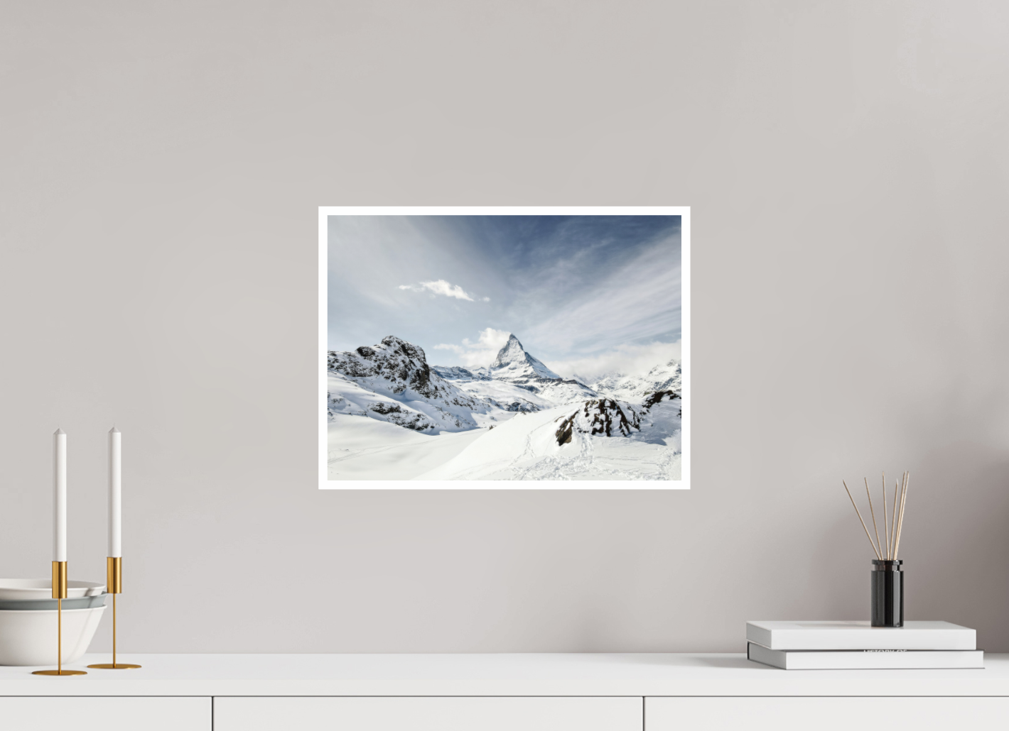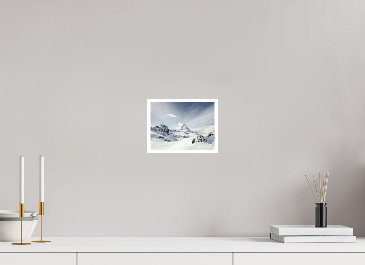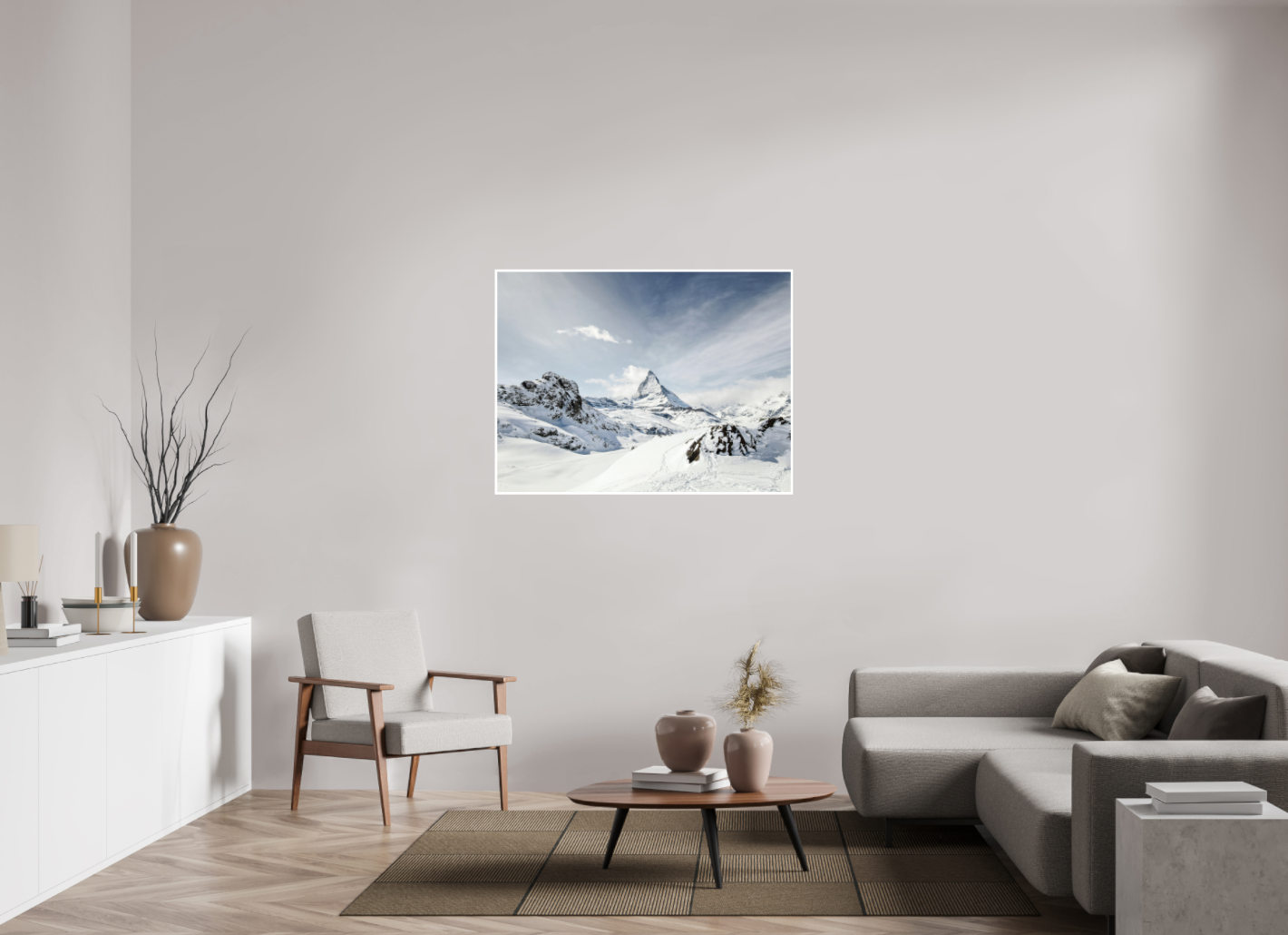 Cette étendue de neige crée une atmosphère de paix et de sérénité. Les couleurs sont calmes et apaisantes entre ciel bleu clair et neige blanche. Les formes sont simples et harmonieuses, avec le Cervin qui se dresse fièrement au-dessus de la plaine. Beauté et puissance de la nature pour tous les amoureux de la montagne.